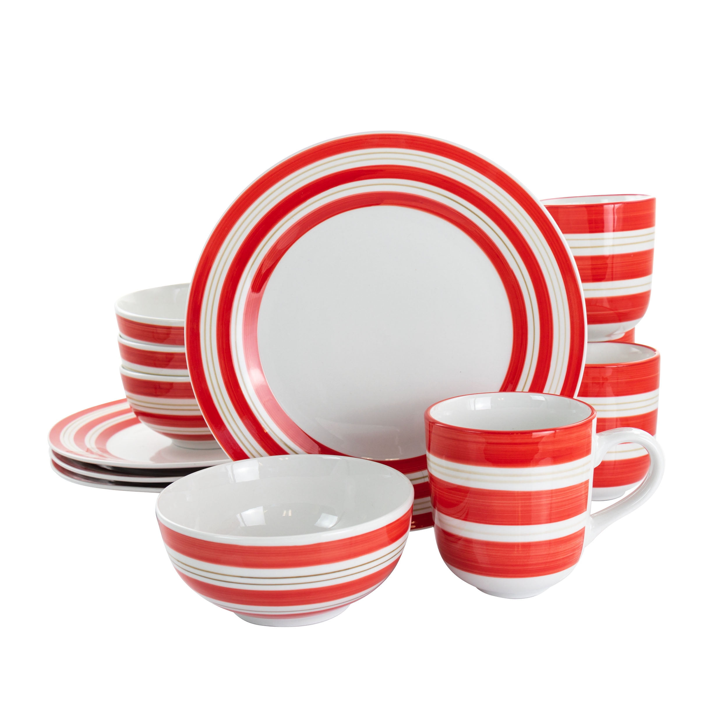 Gibson Home Sunset Stripes 12 Piece Round Fine Ceramic Dinnerware Set In Red Walmart Com